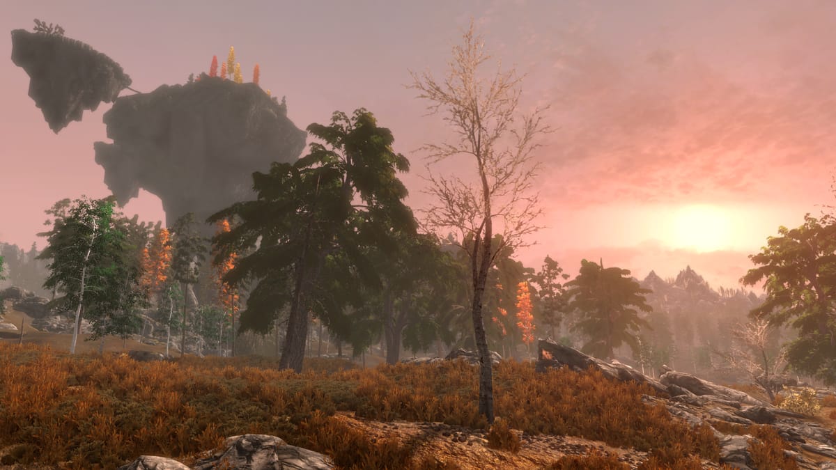 The Floating Island of Legends at sunset.