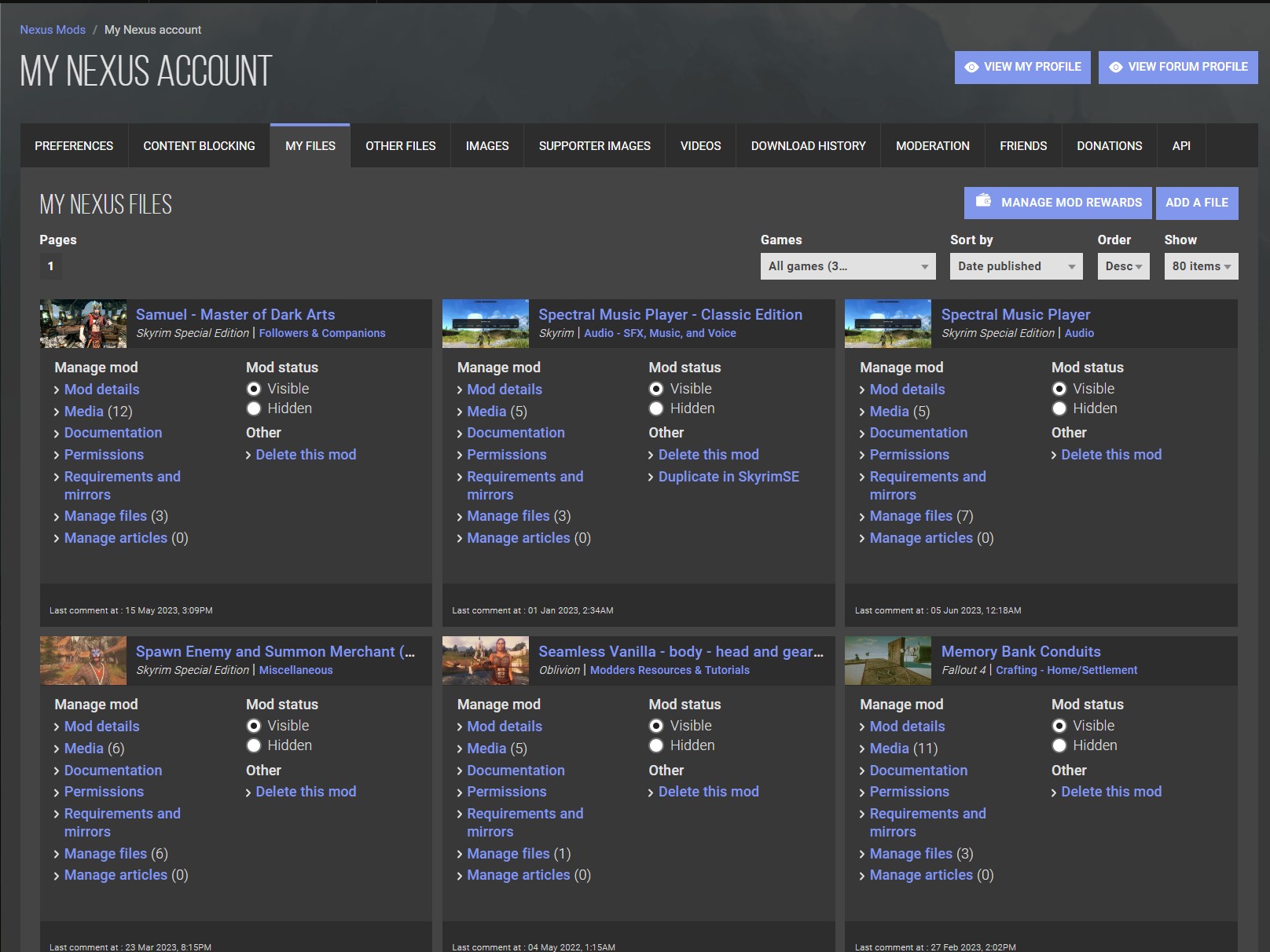 After applying these CSS tweaks, my mods and images pages looked like this: